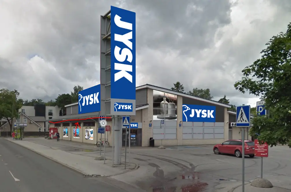 - Asukoha lisainfo Valguskast reklaamiga kaupluse JYSK